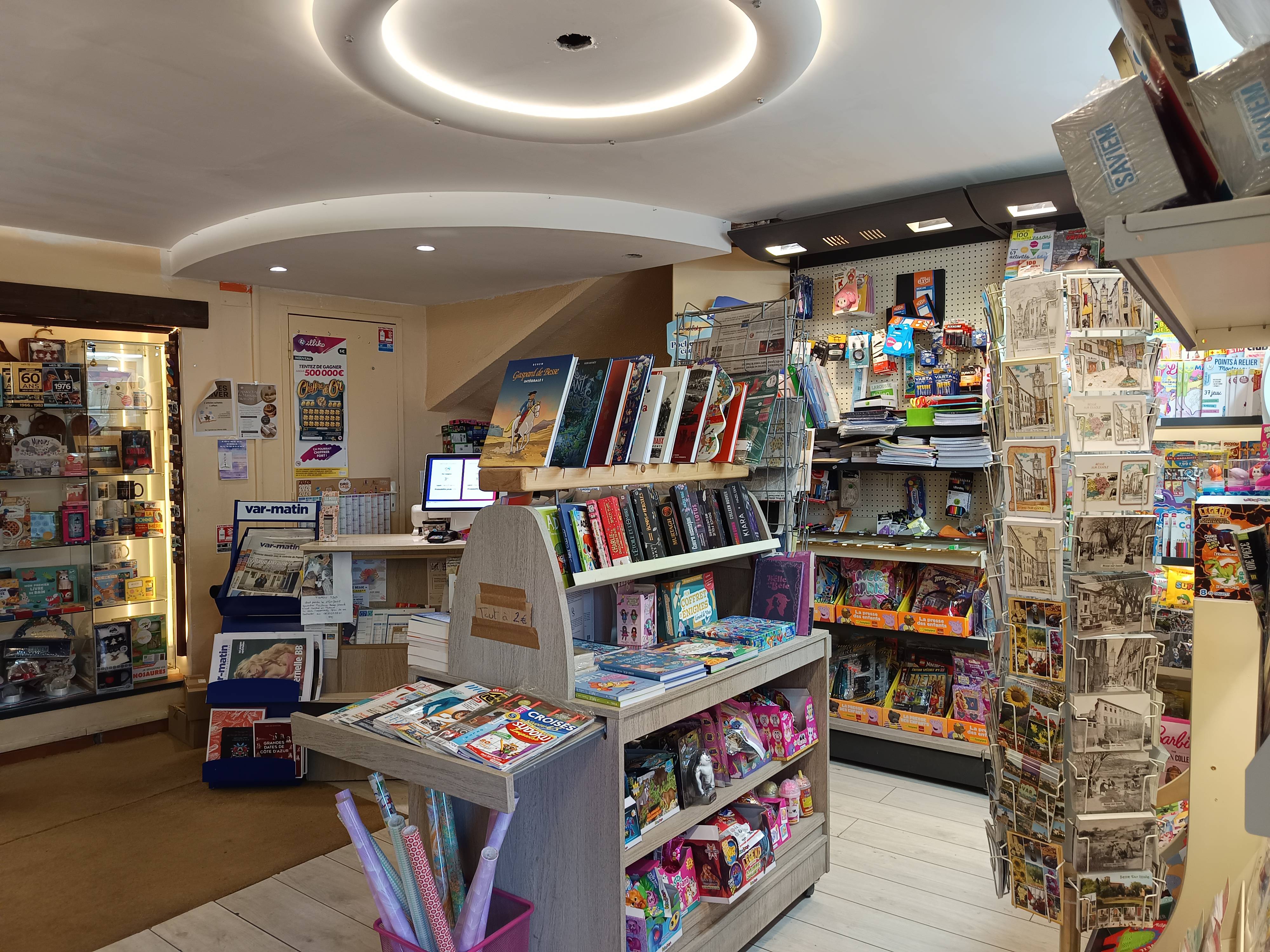 ContactJe suis heureuse de vous accueillir tous les jours pour vos journaux, magazines, loto et jeux à gratter. Vous trouverez également un rayon livres pour tous les âges, un rayon carterie, des fournitures scolaires, et de la confiserie. Au fond du magasin, une vitrine cadeaux et souvenirs de Besse (magnets, mugs, couteaux, jouets, BD..) vous attend ! Autres services proposés : commande de livres / photocopies / cartes de téléphone prépayées / cartes cadeaux. Côté animations, nous avons inauguré avec le Cinéma de Besse nos rendez-vous « Dédicace & Film » cet été. Un autre événement festif arrive en février. A bientôt !
